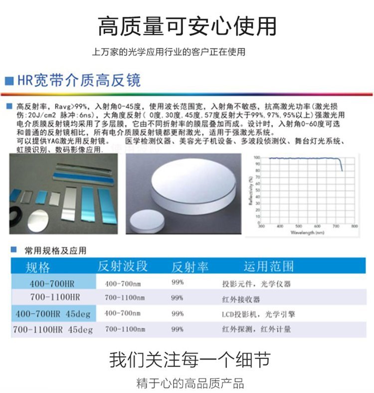 HR寬帶介質(zhì)高反鏡 高反射率